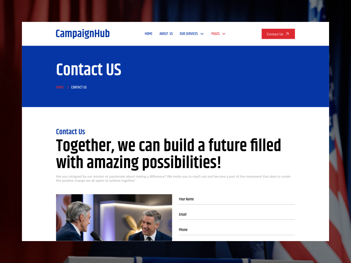 CampaignHub is a powerful and sleek WordPress template kit designed for political campaigns, election candidates, and advocacy initiatives. Built with Elementor, it delivers responsive performance and intuitive customization to help you connect with voters and drive meaningful action.