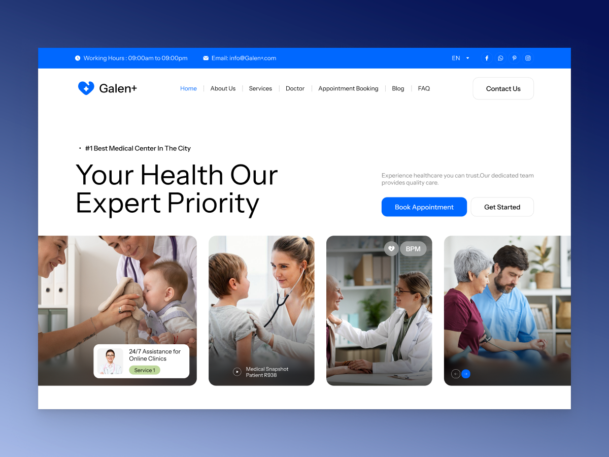 Galen is a modern Medical & Clinics WordPress Elementor template designed for hospitals, clinics, doctors, and healthcare professionals. It combines a clean layout with powerful customization to help you build trust and showcase medical services effectively.