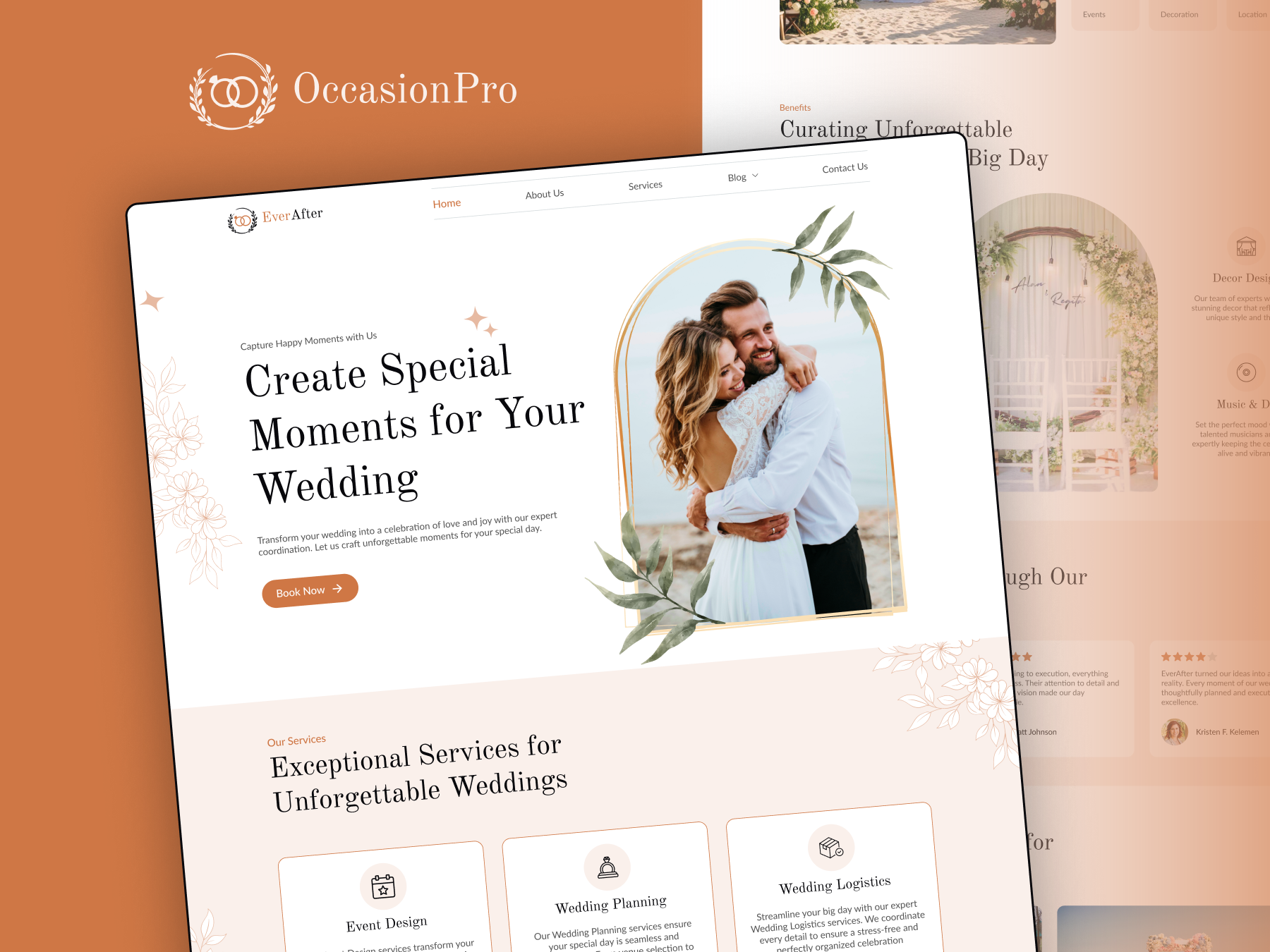 The OccasionPro template kit is a beautifully crafted, Gutenberg-compatible WordPress template designed specifically for wedding planners and event agencies. It offers a fully responsive, customizable layout that allows you to build a professional wedding website without any coding. The kit includes eight pre-designed pages—Home, About, Services, Service Details, Portfolio, Portfolio Details, Blog, and Contact—making it ideal for showcasing wedding services, galleries, testimonials, and client stories.
