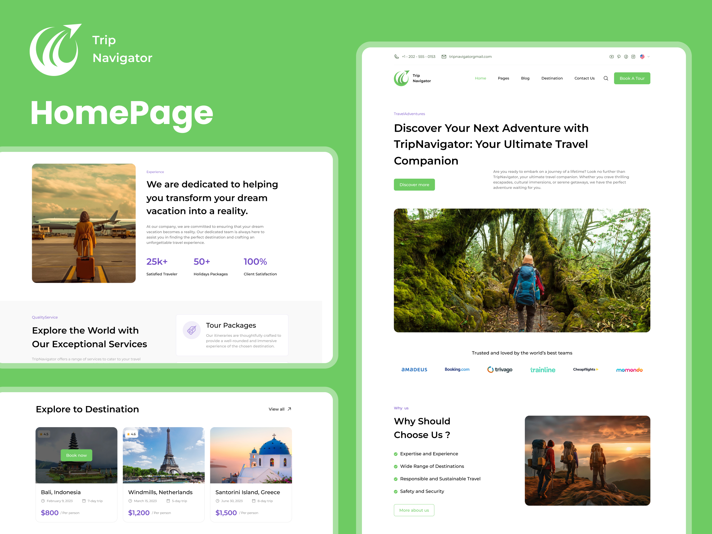 The site layout of TripNavigator is thoughtfully organized to provide a seamless user experience. The homepage welcomes visitors with a captivating hero section, featuring high-quality images and a prominent search bar to help users find their desired destinations or tours easily. The clear and intuitive navigation menu is strategically placed at the top, allowing users to effortlessly explore different sections of the website.