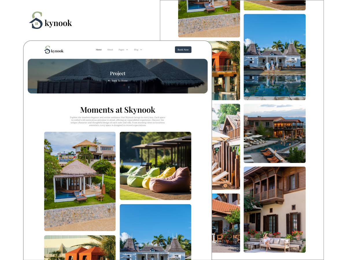 Skynook is a sophisticated website designed for private hotels and villas, offering a serene online experience that reflects the luxury of its accommodations. With a contemporary design and visually stunning layouts, the website highlights premium amenities, exclusive villas, and personalized services for discerning travelers. It features essential pages like Home, About Us, Services, Blog, and Contact Us, ensuring a comprehensive and user-friendly structure. Skynook seamless navigation and captivating visuals provide an immersive showcase of elegant interiors, breathtaking surroundings, and tailored hospitality experiences. Additionally, its easy-to-customize design makes it the perfect platform for creating a unique and exclusive retreat website.