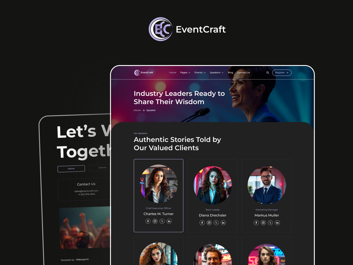 EventCraft is a beautifully crafted website kit tailored for event organizers, conferences, and exhibitions. It provides a professional platform to present event details, Home Page, schedules, speaker page, Pricing and ticketing options, all wrapped in a modern, responsive design. This kit features a clean, stylish layout that ensures a great user experience across all devices. Whether you're planning corporate events, trade shows, or live performances, EventCraft makes it easy to create an engaging and functional website that meets all your needs. With its easy customization and pre-designed templates, you can quickly build your website without any technical expertise. Elevate your event's online presence and leave a lasting impression on your audience with EventCraft.