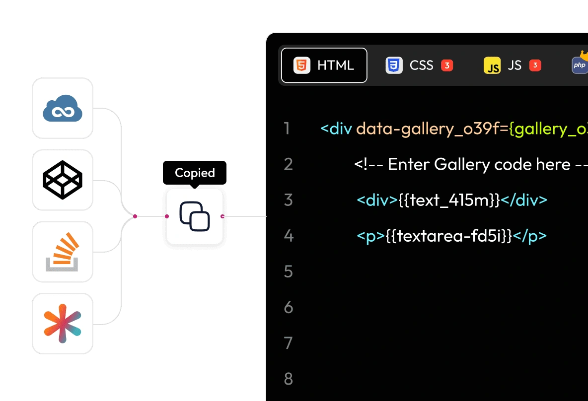 Turn Snippets into Editable WidgetsCopy any code snippet from CodePen, CSS Tricks, or JSFiddle and turn it into a visual, editable Elementor widget in minutes.