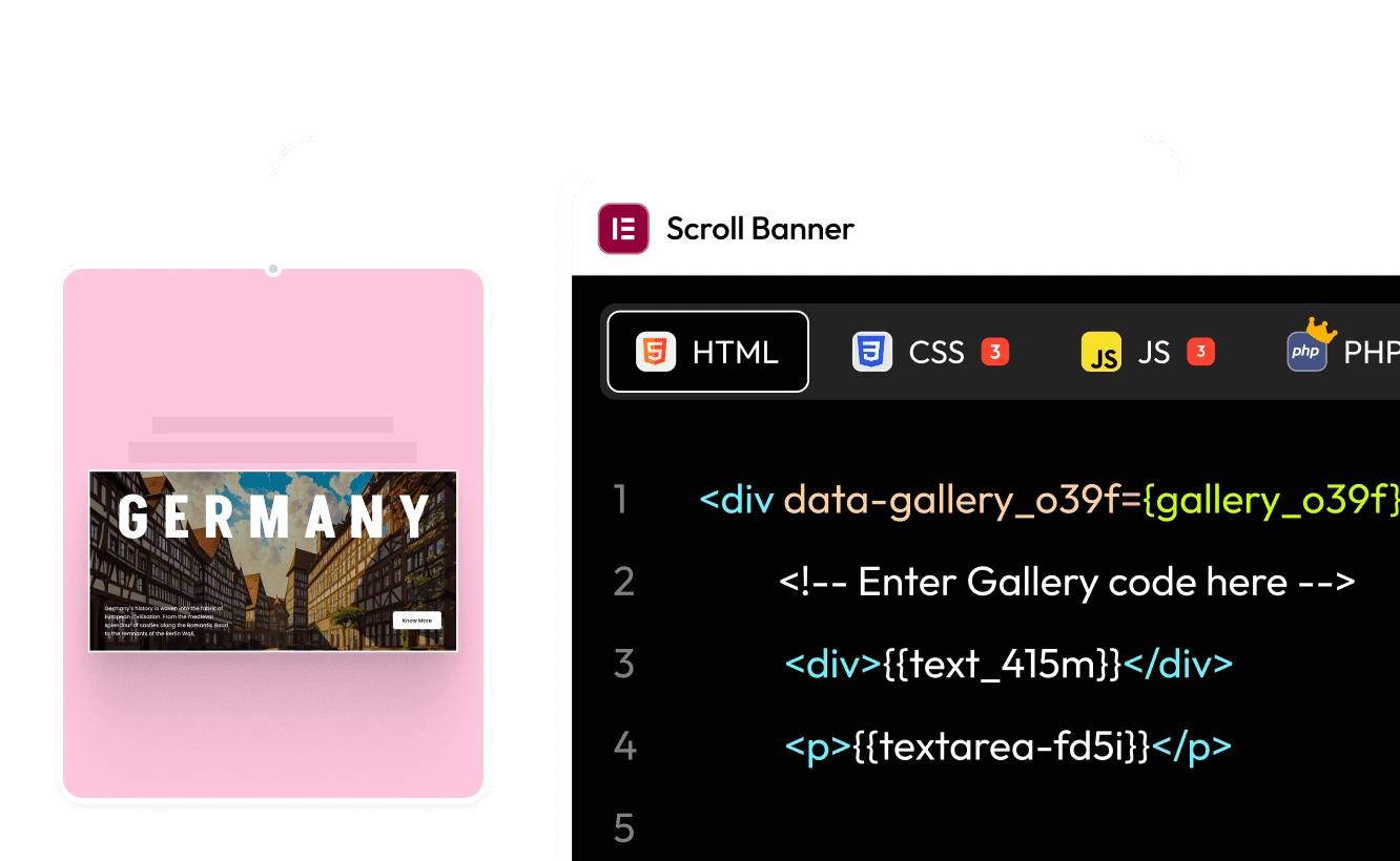 Build your full widget using HTML, CSS, JS, or PHP. Add controllers and finalize it for one page builder of your choice.